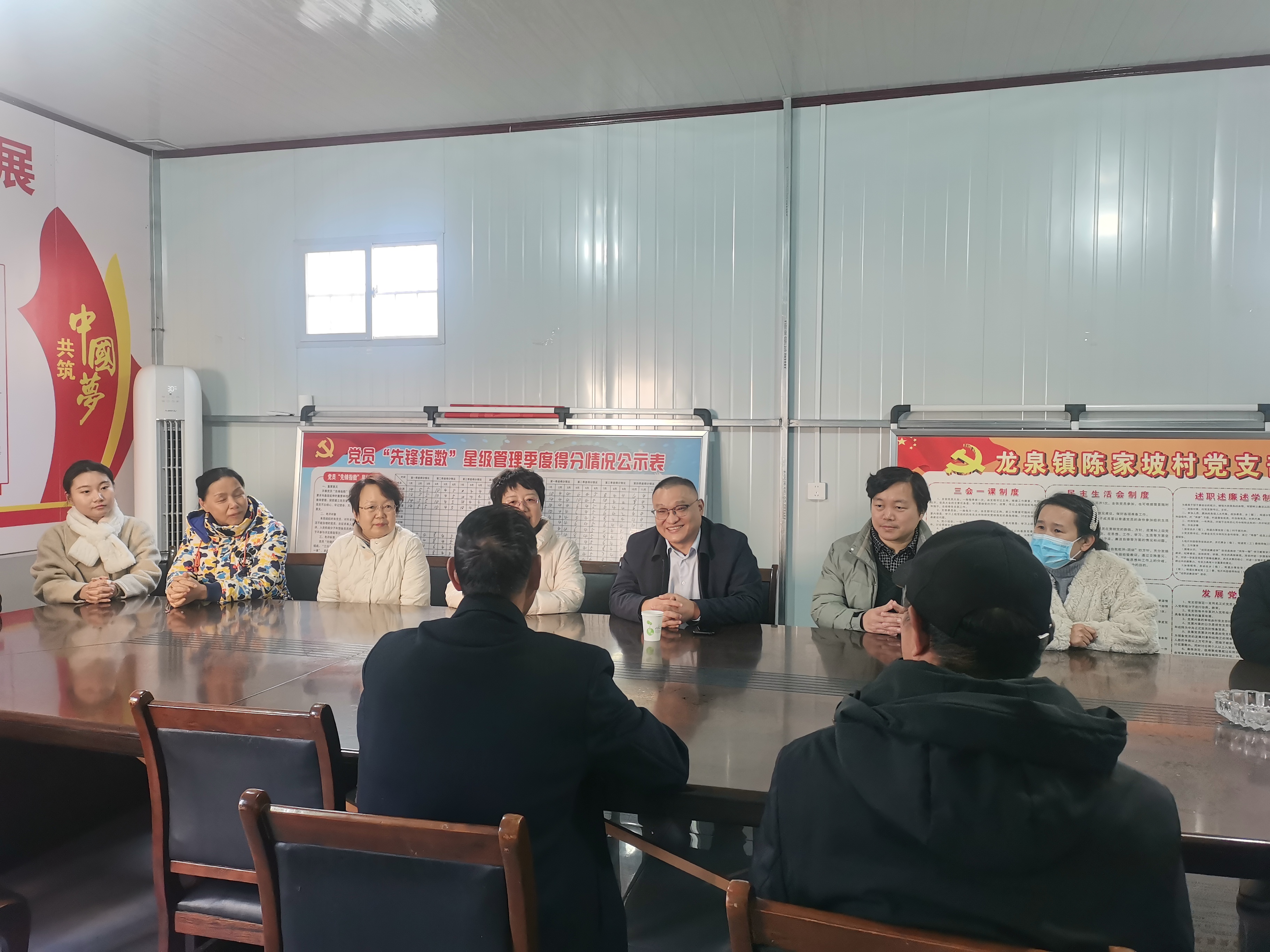 在村党群服务中心,张正伟与驻村第一书记王鲲、陈家坡村两委干部、村民代表展开座谈,详细了解当地常见病、多发病情况及村民健康需求。